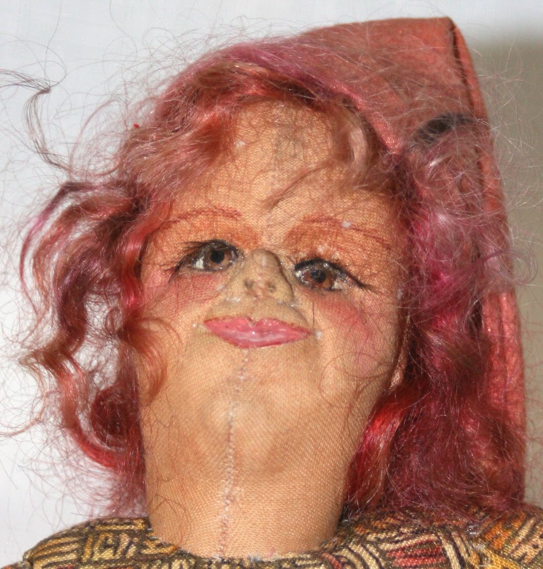 What fun making this elf was. I loved all the fabrics and putting them together. The bear was hand stitched using a pattern, and I really wish I could remember who created the pattern, it's not my original. The bear is made from ultrasuede and is only about 3" high with arms and legs that move.